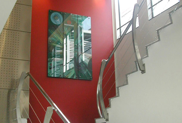 Diseño de arquitectura de interior para todo el hall de acceso y recepción de su planta de producción. La remodelación considero el mobiliario, graficas corporativas y definición de terminaciones de arquitectura.